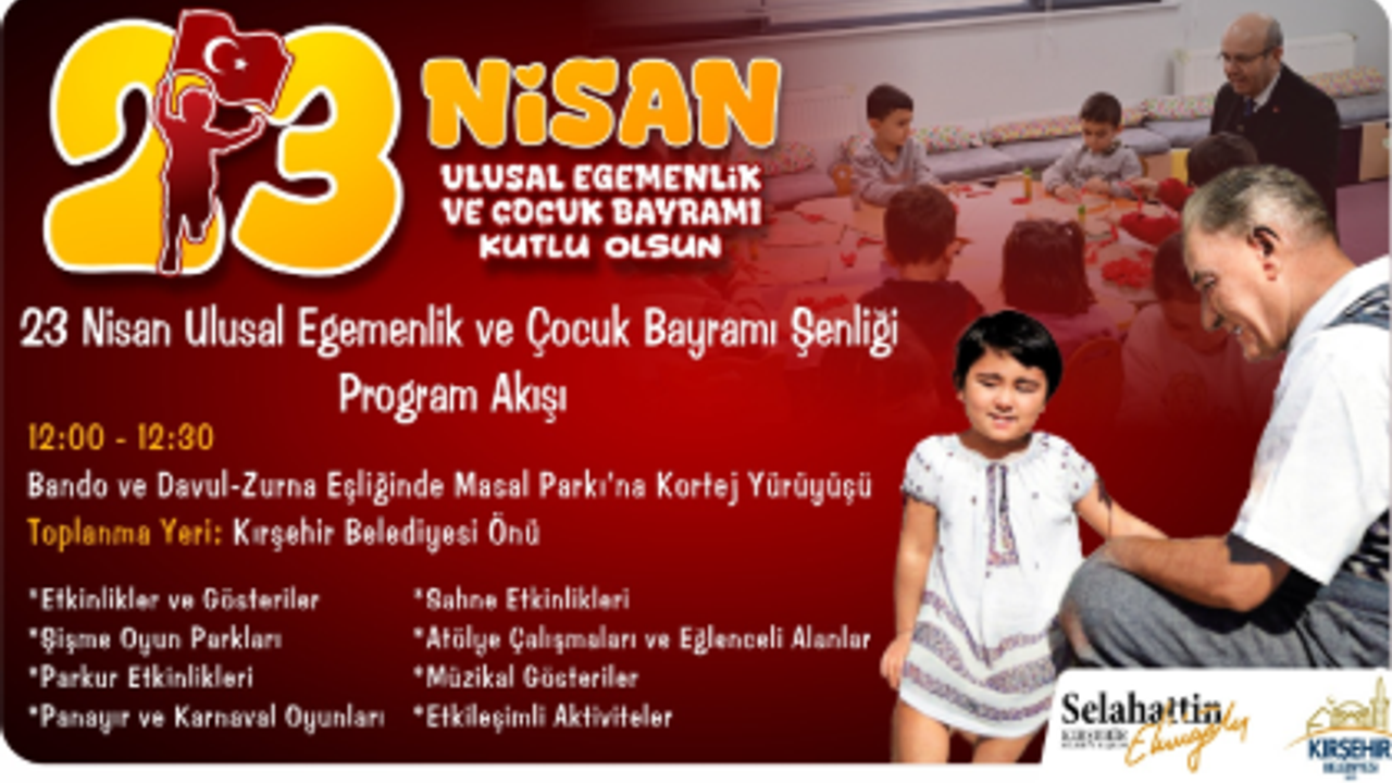 Kırşehir Belediyesi, 23 Nisan Ulusal Egemenlik ve Çocuk Bayramı dolayısıyla düzenleyeceği etkinliklerle çocuklara unutulmaz bir bayram yaşatacak. Bu yılki programın detayları ise belli oldu.