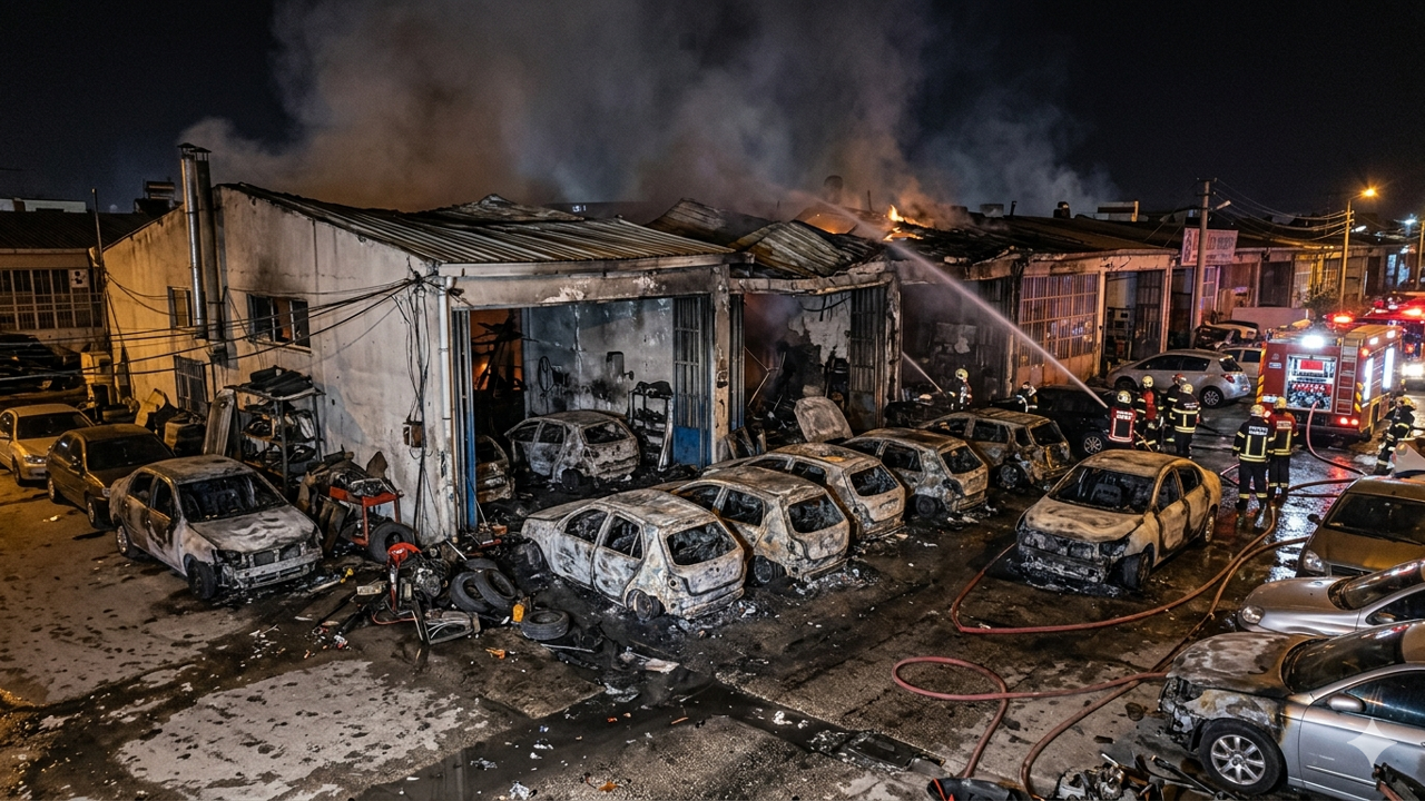Gece yarısı çıkan yangın, sanayi sitesinde paniğe yol açtı. Bir otomobil tamirhanesinde başlayan alevler kısa sürede büyüyerek iş yerini sardı.