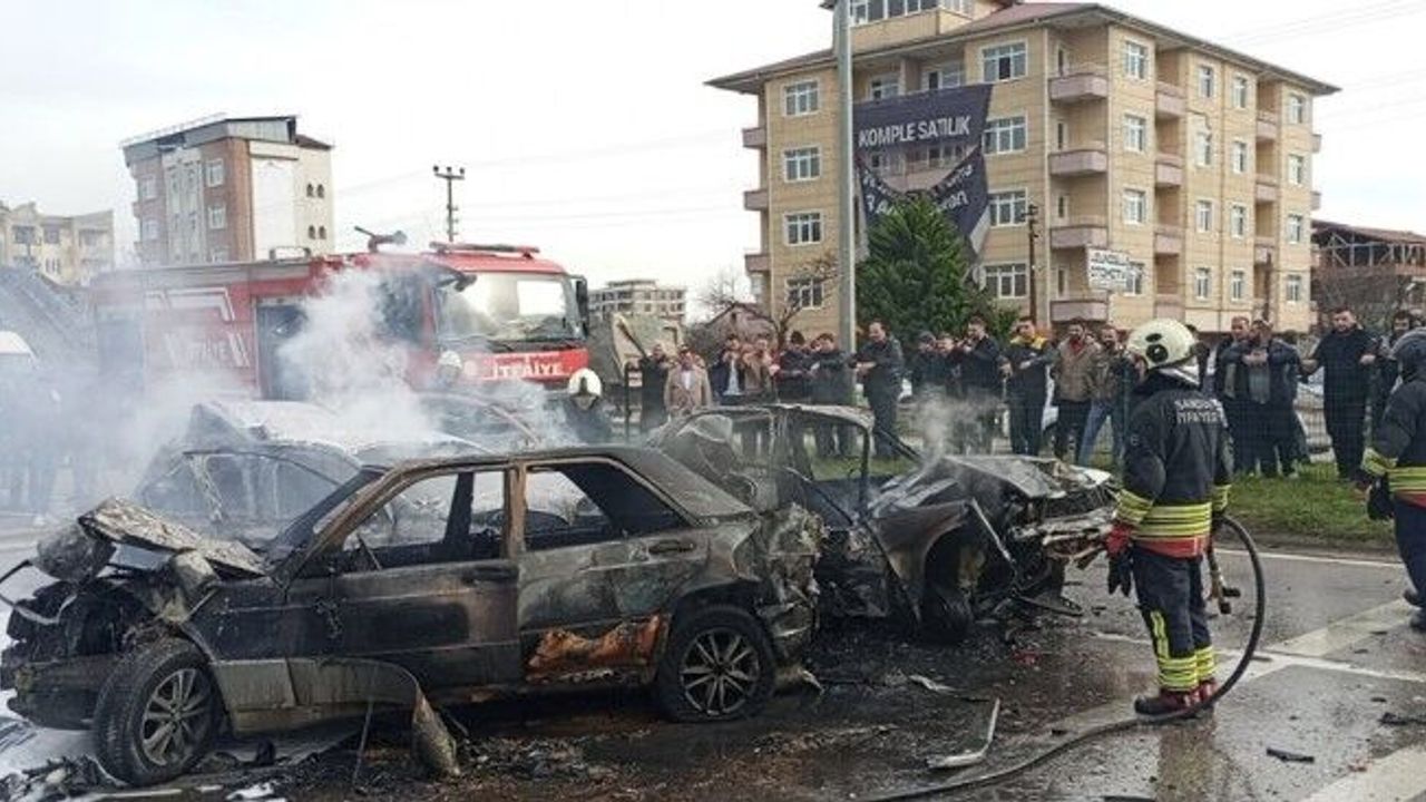 6 Araç Çarpıştı, 3 Araç Kül Oldu, 7 Kişi Yaralandı