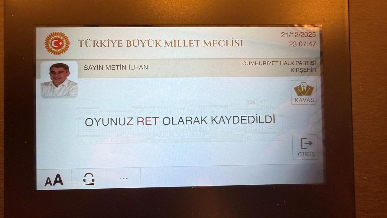 Cumhuriyet Halk Partisi (CHP) Kırşehir Milletvekili Metin İlhan, 2026 Yılı Merkezi Yönetim Bütçe Kanunu Teklifi için ret oyu verdiğini paylaştı.