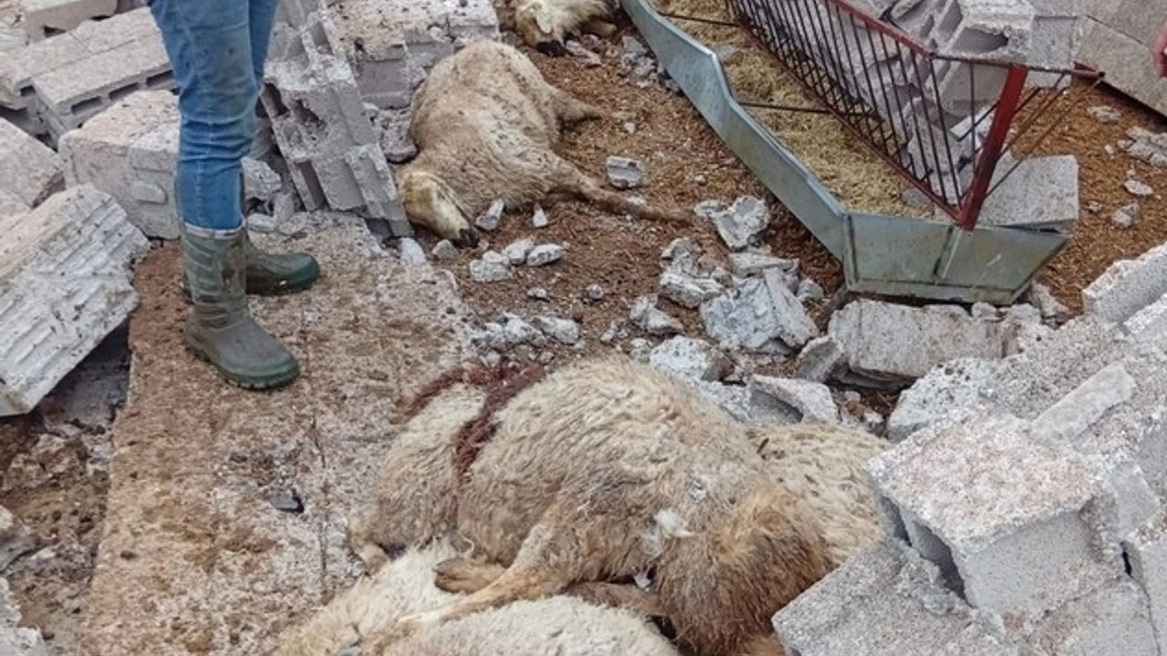 Karapınar'da Feramus Bilada'ya ait ağılda enkaz altında kalan 12 küçükbaş hayvan telef oldu.