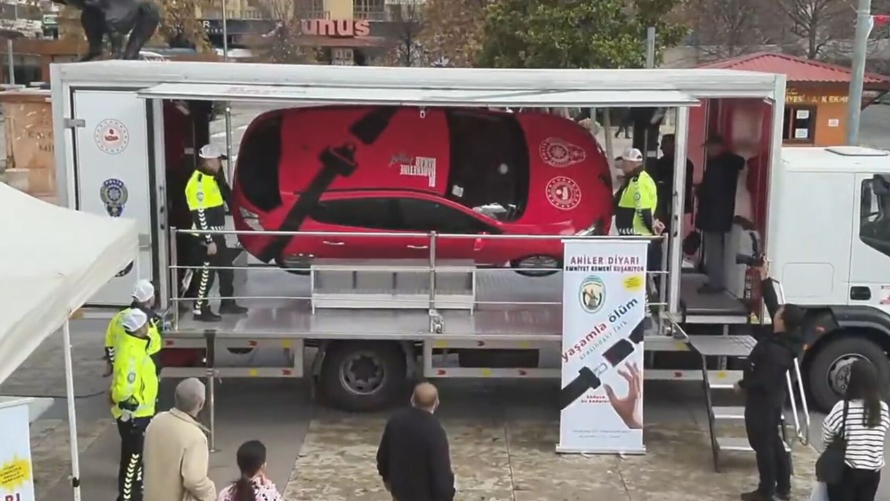 Kırşehir İl Emniyet Müdürlüğü, trafik güvenliği konusunda farkındalık oluşturmak amacıyla Cacabey Meydanı’nda Emniyet Kemeri Simülasyon Aracı kurdu. Kırşehir Cacabey Meydanı’nda Emniyet Kemeri Simülasyon Aracı, Kırşehirlilerle buluştu. Kırşehir İl Emniyet Müdürlüğü Trafik Tescil ve Denetleme Şube Müdürlüğü ekipleri vatandaşlara emniyet kemerinin önemini uygulamalı olarak anlatarak bilgilendirmelerde bulundu.