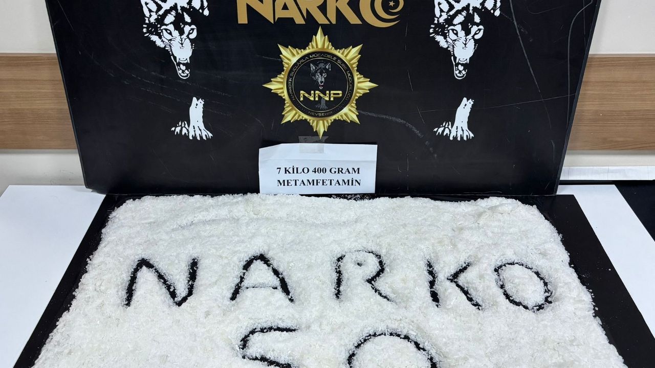 Narkotik dedektör köpeğiyle şüphelinin aracında yapılan aramada, stepneye gizlenmiş 7 kilo 400 gram sentetik uyuşturucu ele geçirildi.