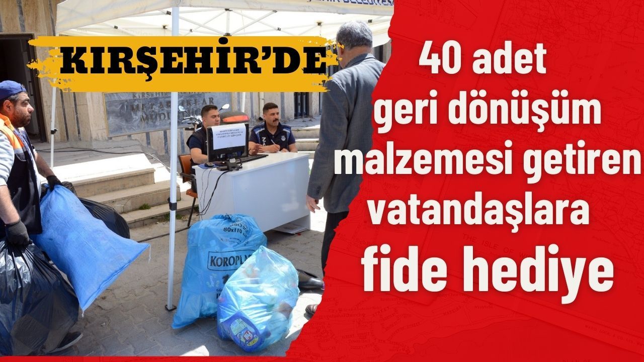 Kırşehir Belediyesi tarafından “Atık olarak düşündüğümüz bazı şeyler çöp değildir” sloganıyla başlatılan kampanya kapsamında 40 adet geri dönüşüm malzemesi getiren vatandaşlara fide teslim ediliyor. Kırşehir Belediyesi, daha önceki yıllarda da olduğu gibi, yapmış olduğu kampanya ve sosyal sorumluluk projeleriyle farkındalık yaratmaya devam ediyor. Kırşehir’de 2024 yılında Mayıs ayında gerçekleştirilen bu senede 21-30 Nisan tarihleri arasında 40 adet geri dönüşüm malzemesi getiren vatandaşlara 6-9 Mayıs tarihleri arasında fide teslim edilecek. Kırşehir Belediye Başkanı Selahattin Ekicioğlu bu kampanya ile Kırşehirlilerin yerli fide kullanarak tarımsal üretime yönelmesi ve tarımsal üretimin gelişimine katkı sunmayı amaçladıklarını ifade etti.