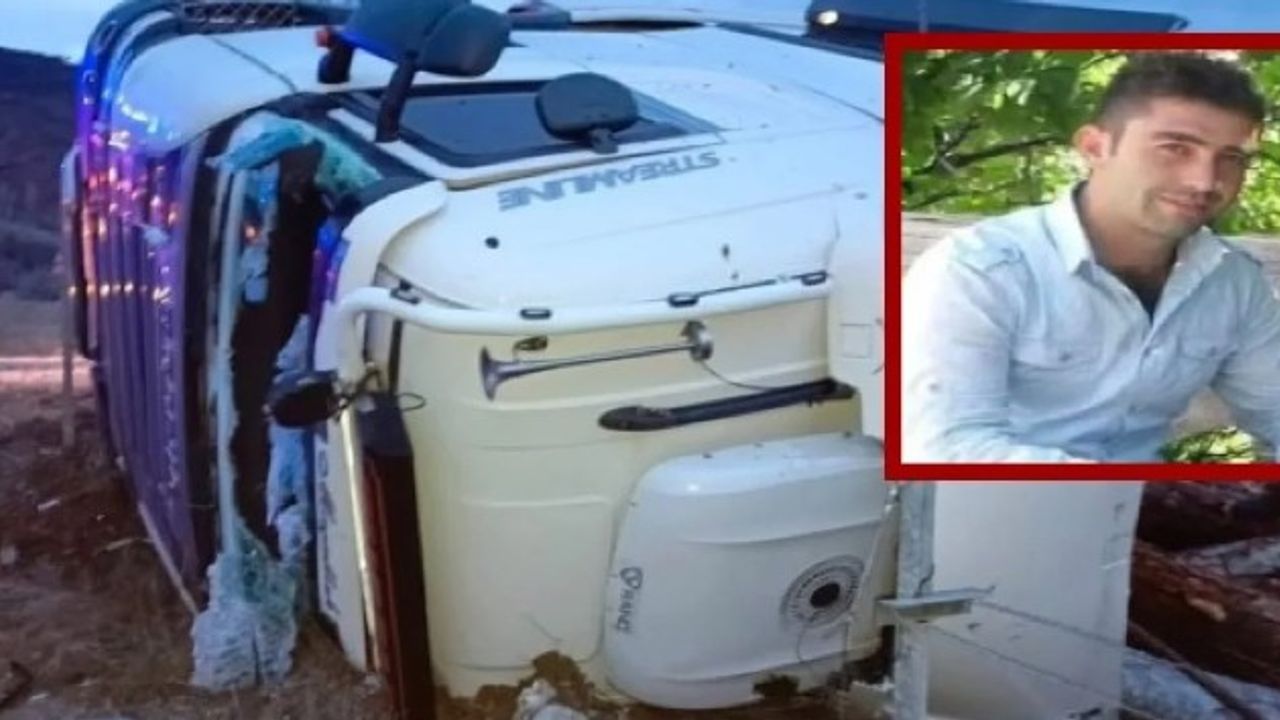 Şarampole devrilen tomruk yüklü tırın sürücüsü hayatını kaybetti.