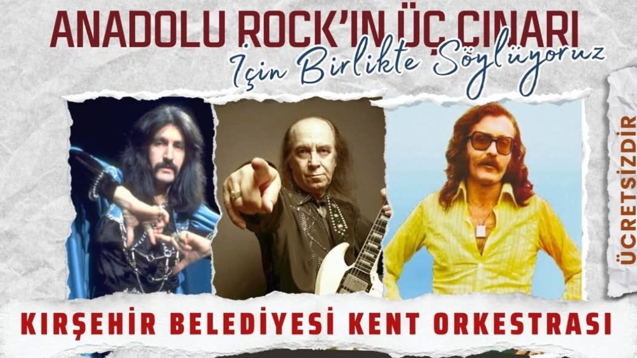 Özgür Taşkın yönetiminde, Kırşehir Belediyesi Kent Orkestrası tarafından hazırlanan ve ücretsiz olarak gerçekleştirilecek konserde Barış Manço’nun özgün eserleri, Erkin Koray’ın rock sahnesindeki unutulmaz şarkıları ve Cem Karaca’nın toplumsal mesajlarla yoğrulmuş şarkıları yeniden yorumlanacak.