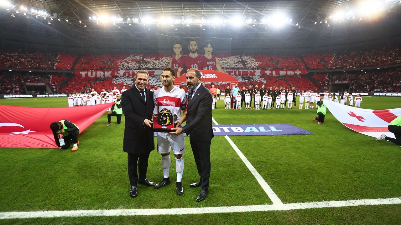 Bulgaristan maçında A Millî Takım formasını 100. kez giyen Kaptan Hakan Çalhanoğlu'na Gürcistan karşılaşması öncesinde 100 numaralı özel forma ve plaket verildi. TFF 1. Başkan Vekili Mecnun Otyakmaz ve Genel Sekreter Abdullah Ayaz, Hakan Çalhanoğlu'na günün anısına hazırlanan formasını ve plaketini takdim etti. Hakan Çalhanoğlu, Gürcistan maçıyla birlikte 101. kez A Millî Takım formasını giyerek, en fazla millî formayı giyen oyuncular sıralamasında 4. sırada yer alan Emre Belözoğlu'nu yakaladı.