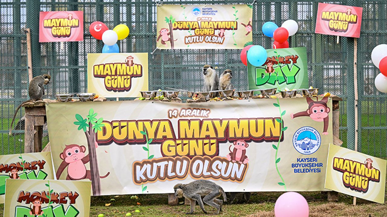 Kayseri Büyükşehir Belediyesi Hayvanat Bahçesi görevlileri, 14 Aralık Dünya Maymun Günü dolayısıyla maymunlara özel muz ziyafet partisi düzenledi.