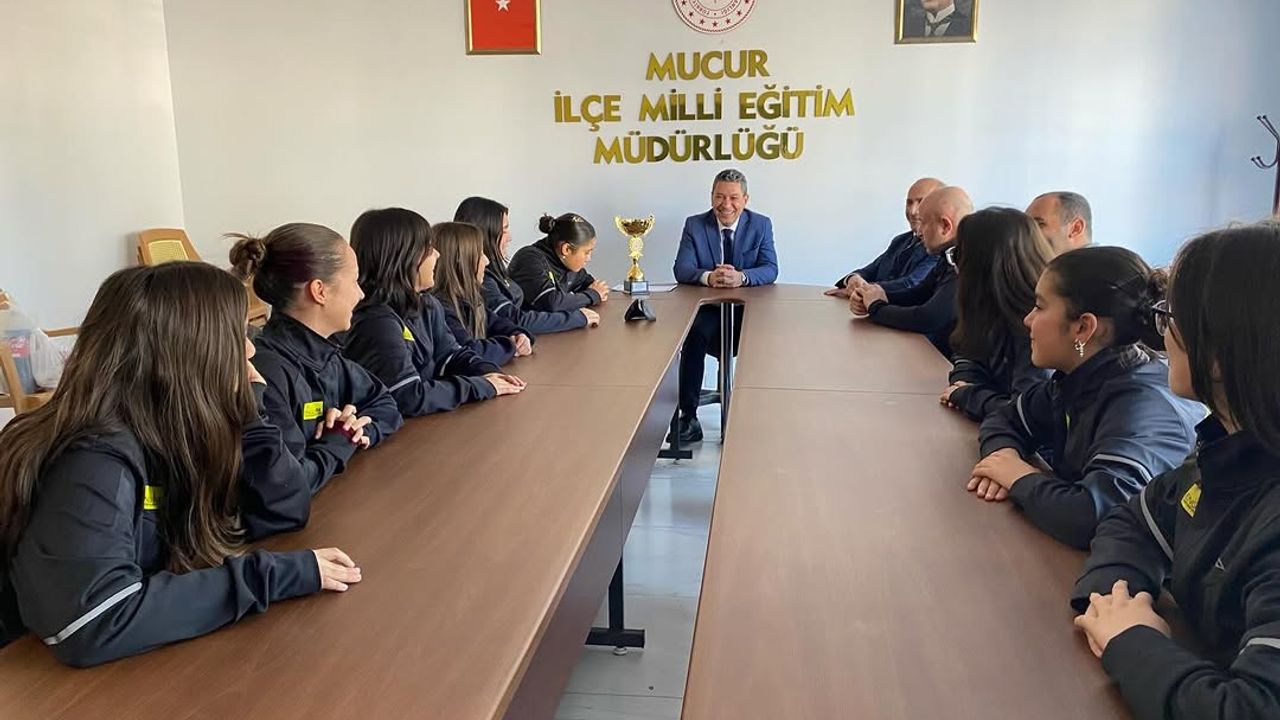 Şampiyonluk sonrası sporcular ve teknik heyet, kutlama ziyaretlerini sürdürüyor. İlk olarak Mucur Gençlik ve Spor İlçe Müdürü Emre Aslan’ı makamında ağırlayan öğrenciler, daha sonra Mucur İlçe Milli Eğitim Müdürü Örsan Pınar’ı ziyaret etti.