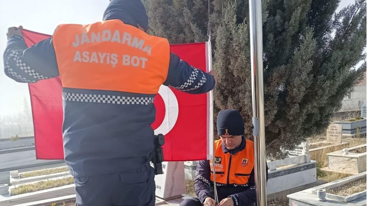 Kırşehir İl Jandarma Komutanlığı personelleri, Kaman ve Boztepe ilçelerinde bulunan şehit kabirlerini ziyaret ederek bakım ve temizlik çalışması yaptı, bayrakları yeniledi.