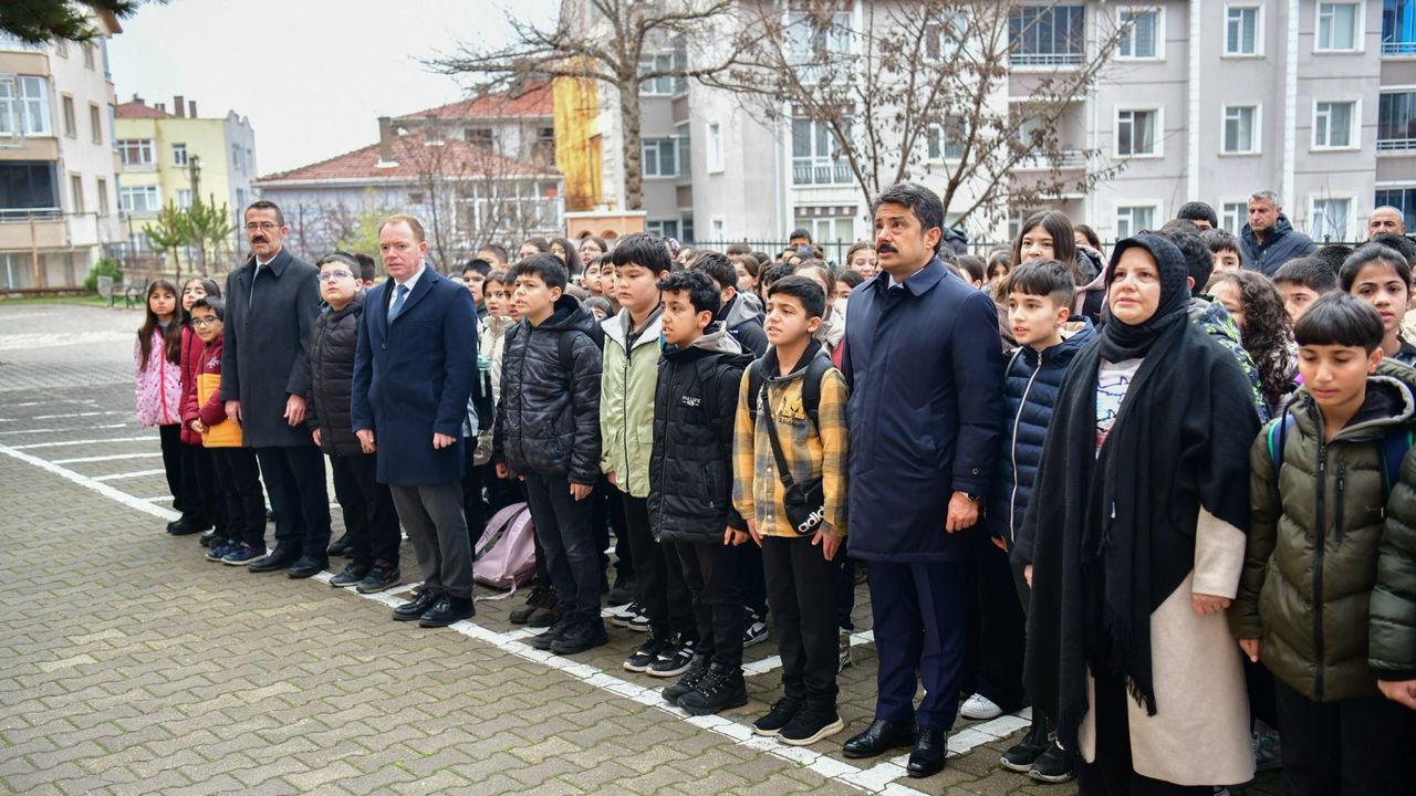 Okul bahçesinde düzenlenen törende öğrencilerle yan yana gelen Vali Demiryürek, Şanlı Bayrağımızın göndere çekildiği törende İstiklal Marşı’nı coşkuyla seslendirdi. Törenin ardından okul binasına geçerek eğitim faaliyetlerini yerinde inceledi.