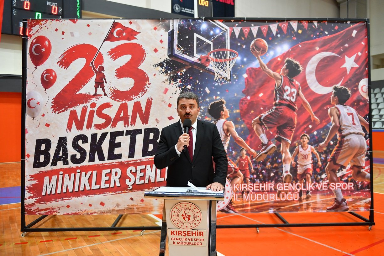 Kırşehir Valiliği himayelerinde, Gençlik ve Spor İl Müdürlüğü ile Basketbol İl Temsilciliği iş birliğinde gerçekleştirilen organizasyonda konuşan Spor İl Müdürü Çakmakçı, hem sporculara hem de velilere hitap etti. Yoğun katılımla gerçekleşen açılışta salonu dolduran aileler ve minik sporcular, 23 Nisan coşkusunu hep birlikte yaşadı. Konuşmasına katılımcıları selamlayarak başlayan Kırşehir Gençlik ve Spor İl Müdürü Yasin Çakmakçı, 23 Nisan’ın sadece bir bayram değil, aynı zamanda çocuklara verilen değerin en büyük göstergesi olduğunu ifade etti. Şölenin, çocukların enerjisiyle birleşerek anlam kazandığını belirten Çakmakçı, “Bugün burada çok güzel bir heyecanı birlikte yaşıyoruz. Bayram neşesini sahadaki enerjiyle birleştiriyoruz” dedi.