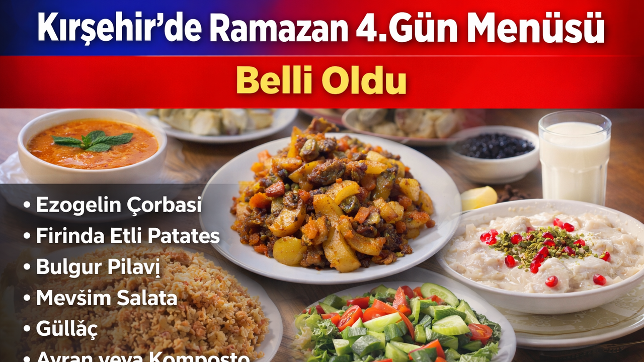 Kırşehir’de Ramazan ayının 4. günü için hazırlanan iftar menüsü belli oldu. Çorba, ana yemek ve tatlıdan oluşan dengeli seçenekler sofralarda yerini aldı.