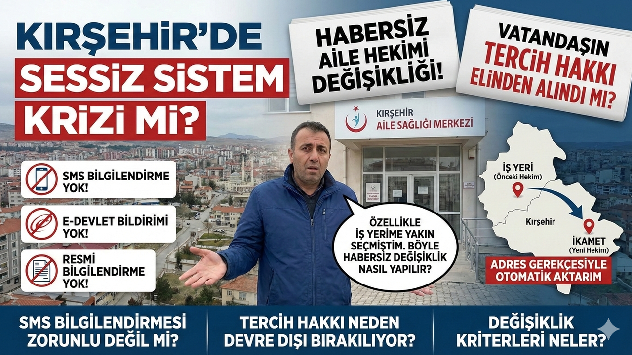 Kırşehir’de bir vatandaş sabah saatlerinde gittiği Aile Sağlığı Merkezi’nde büyük bir şaşkınlık yaşadı. Daha önce kendi tercihiyle iş yerine yakın bir aile hekimine kayıt yaptıran vatandaş, muayene olmak için gittiğinde aile hekiminin değiştirildiğini öğrendi.
