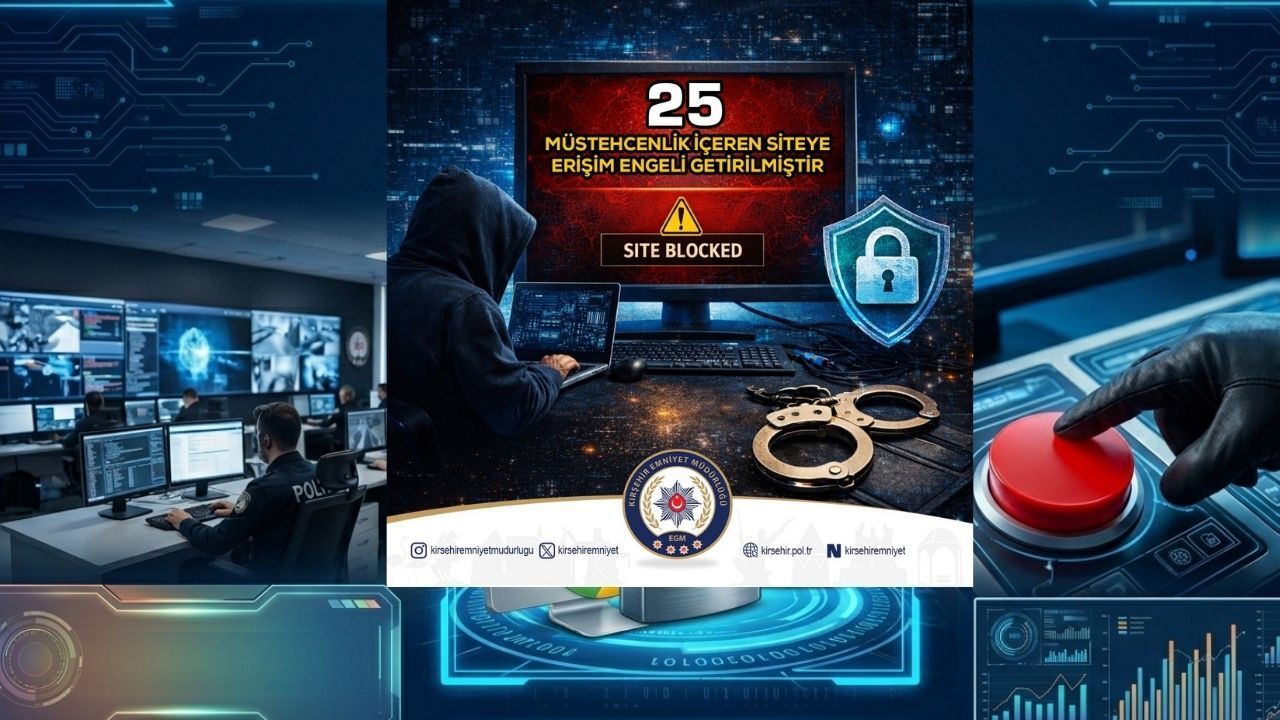 Kırşehir İl Emniyet Müdürlüğü sosyal medya hesapları üzerinden yapılan paylaşımda “İl Emniyet Müdürlüğümüz Siber Suçlarla Mücadele Şube Müdürlüğünce yürütülen sanal devriye çalışmaları kapsamında, yurt dışı sunucular üzerinden müstehcenlik içerikli yayın yaptığı tespit edilen 25 internet sitesine mahkeme kararı doğrultusunda erişim ve içerik engeli getirilmiştir.
