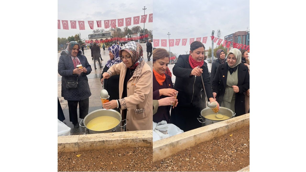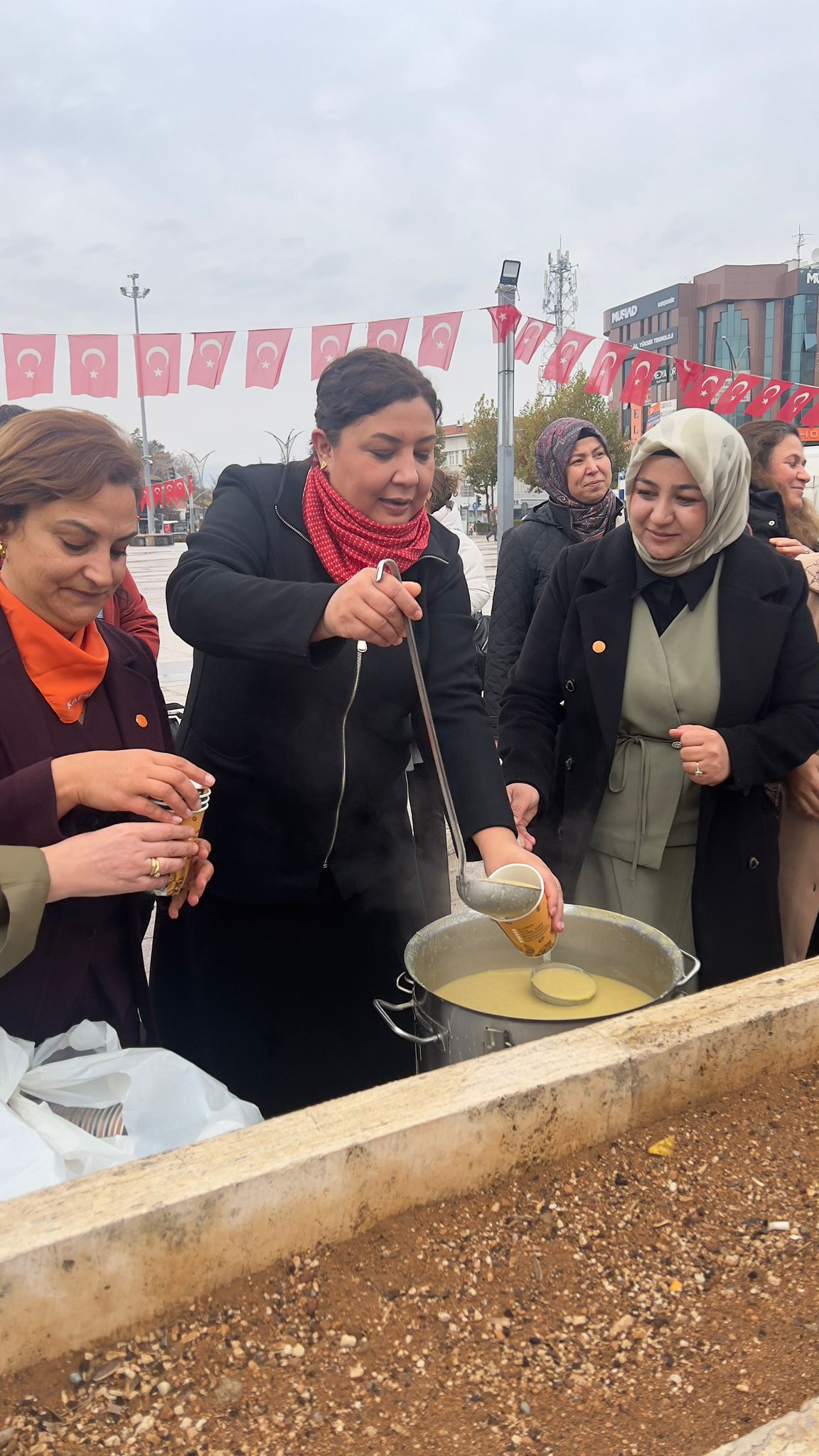 KADEM ve AK Parti İl Başkanı Seher Ünsal, Cacabey Meydanı’nda vatandaşlara çorba ikram etti…
