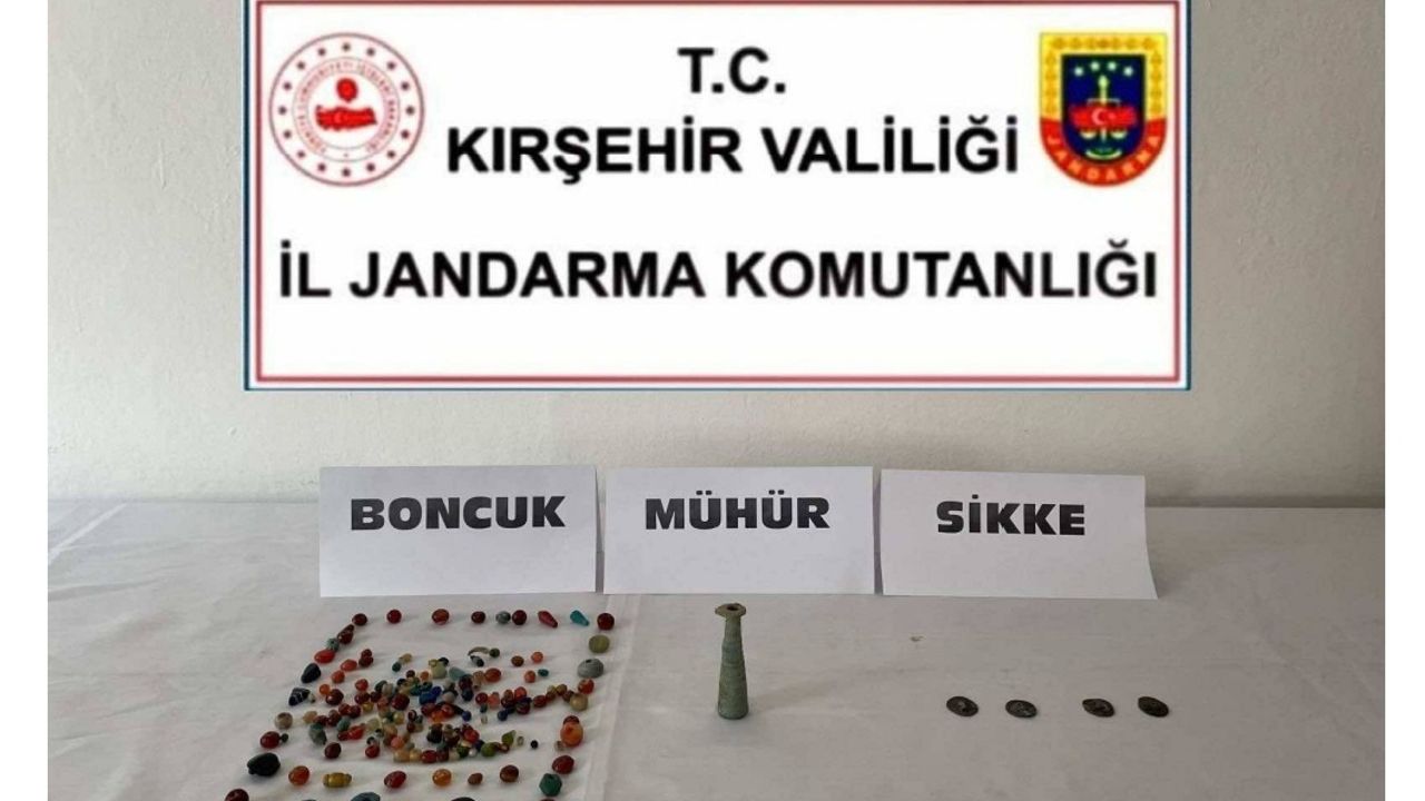 “Kırşehir İl Jandarma Komutanlığı olarak tarihi ve kültürel değerlerimizin korunması, kaçak kazı ve definecilik faaliyetlerinin önlenmesi, faillerin yakalanarak adalete teslim edilmesi amacıyla gerçekleştirilen “Anadolu Mirası Operasyonları” kapsamında; İstihbarat Şube Müdürlüğü, KOM ve Mucur İlçe Jandarma Komutanlığı unsurlarımızca gerçekleştirilen ortak çalışmalar neticesinde Y.S.K. ve T.K. isimli şahısların içerisinde olduğu araç durdurulmuştur. Araçta yapılan aramada;