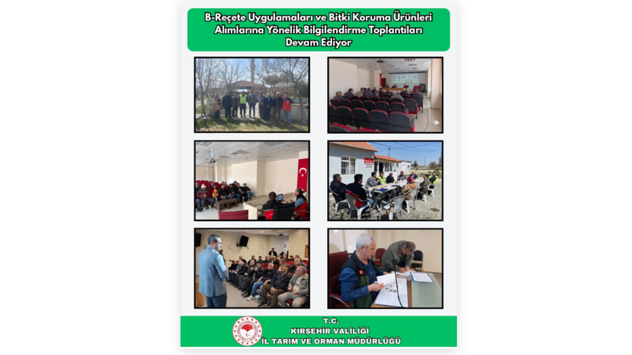 Kırşehir genelinde bitki sağlığını korumak, bilinçli ve kontrollü tarımsal üretimi yaygınlaştırmak amacıyla yürütülen B-Reçete ve Bitki Koruma Ürünleri (BKÜ) bilgilendirme toplantıları hız kesmeden devam ediyor.