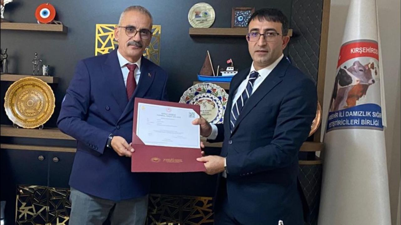 Kırşehir Damızlık Sığır Yetiştiricileri Birliği (DSYB), Tarım ve Orman Bakanlığı tarafından yürütülen değerlendirmeler sonucunda “Birinci Derece Tarımsal Örgüt” Belgesi almaya hak kazandı. Kırşehir Tarım Orman İl Müdürü Bülent Zafer Taş, Kırşehir Damızlık Sığır Yetiştiricileri Birliği (DSYB) Başkanı Bülent Ozan’a Birinci Derece Tarımsal Örgüt” Belgesini takdim etti. İl Müdür Yardımcısı Semih Çetinkaya ve ilgili kurum temsilcilerinin de katıldığı programda, birlik tarafından yürütülen projeler ve geleceğe dönük çalışmalar hakkında istişarelerde bulunuldu.