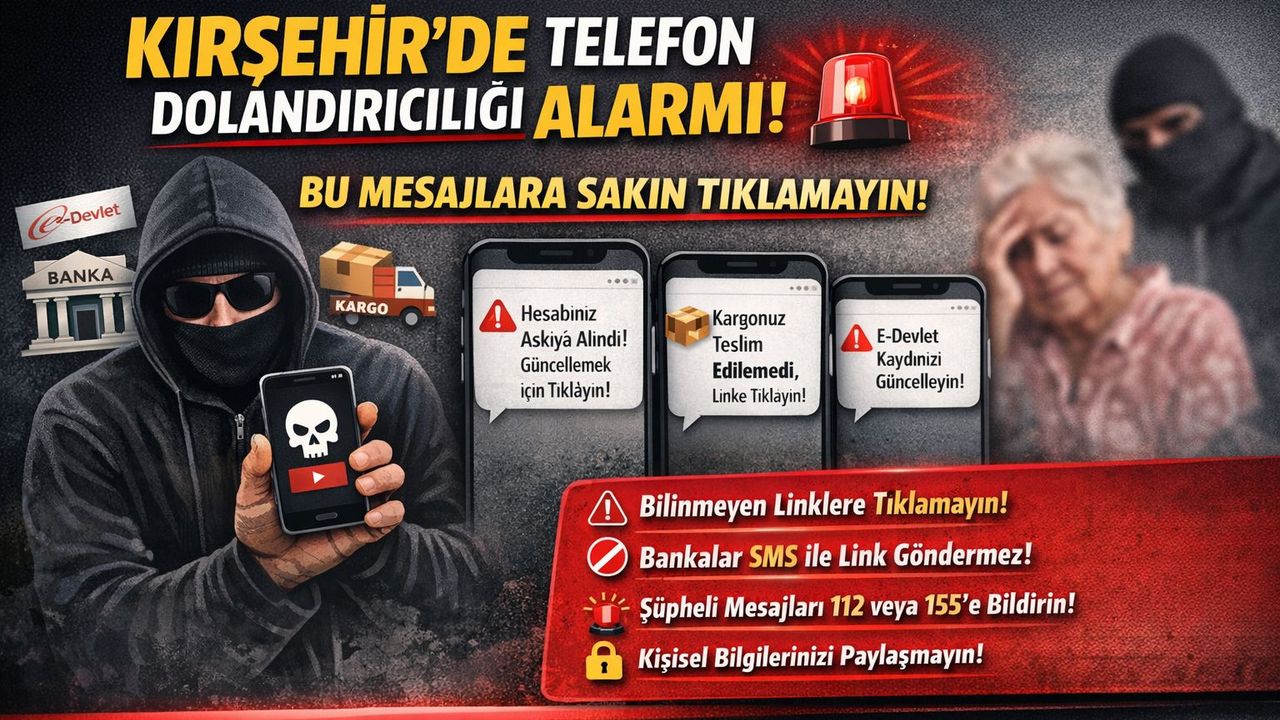Uzmanlar, Kırşehir’de son günlerde artan şikâyetler üzerine vatandaşları uyardı. “Hesabınız askıya alındı”, “Kargonuz teslim edilemedi”, “E-Devlet kaydınızı güncelleyin” gibi mesajların tamamına yakınının dolandırıcılık amaçlı olduğu belirtildi.