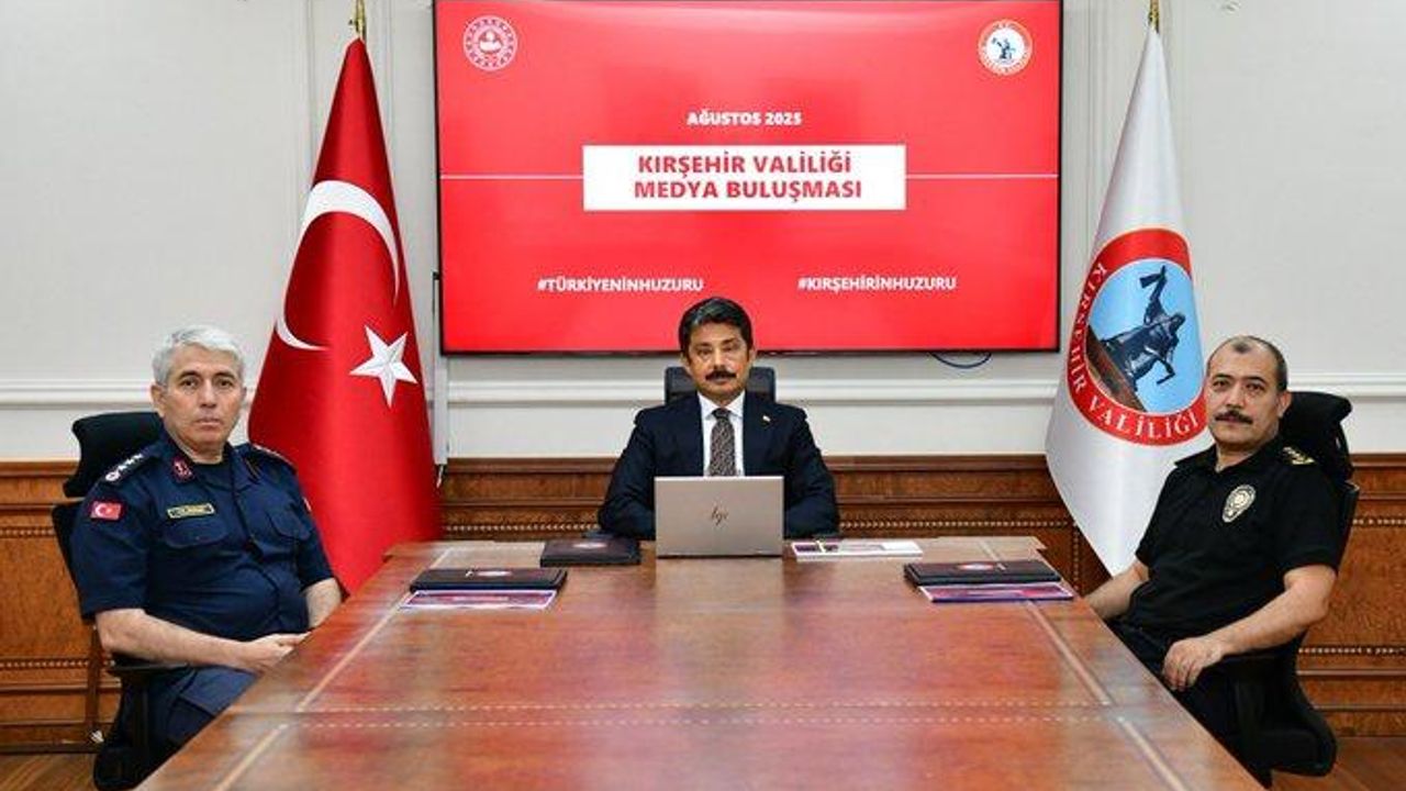 Vali Demiryürek, “Ülkemiz ve Kırşehir’in huzuru için Ağustos ayında ilimiz genelinde yürütülen güvenlik ve asayiş çalışmalarına dair gelişmeleri siz kıymetli hemşehrilerimizle paylaşmak üzere huzurunuzdayız 2025 yılı Ağustos ayı boyunca vatandaşlarımızın can ve mal güvenliğini sağlamak suçunun önüne geçmek ve suçluları adalete teslim etmek amacıyla güvenlik birimlerimizce yürütülen operasyonlara ilişkin bilgileri icralarına Komutanımız Albay Ahmet Yıldırım ve İl Emniyet Müdürümüz Erdoğan Kartal ile birlikte sizlere arz edeceğiz” dedi.