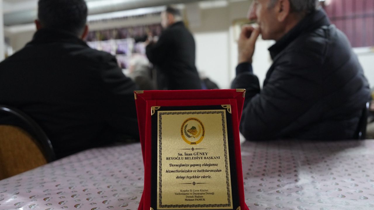 Kırşehir İli ve Çevre Köyleri Yardımlaşma ve Dayanışma Derneği, Silivri Cezaevi’nde tutuklu bulunan Beyoğlu Belediye Başkanı İnan Güney’e anlamlı bir dayanışma plaketi gönderdi. Dernek üyeleri tarafından hazırlanan plaket, Beyoğlu İlçe Başkanı Cenk Bleda Haşhaş ve Belediye Başkan Vekili Sefer Karaahmetoğlu aracılığıyla Güney’e ulaştırıldı.