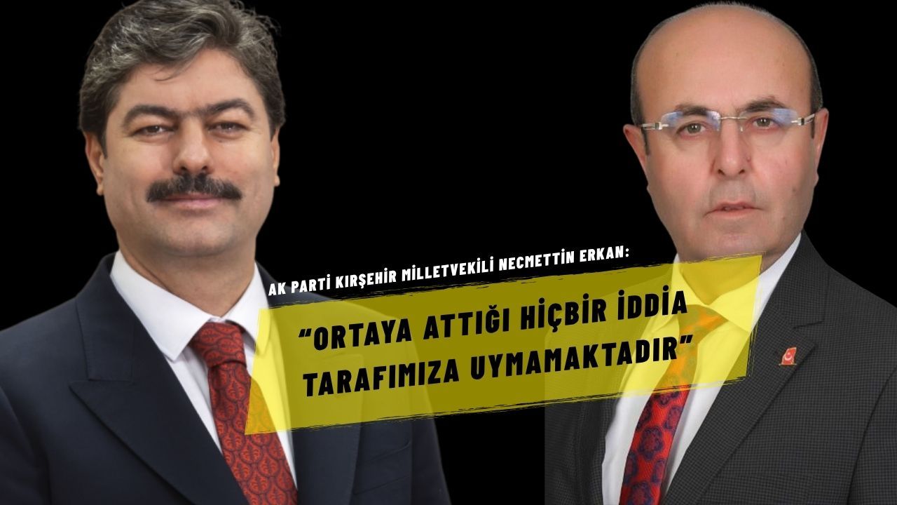 Başkan Ekicioğlu ayrıca Milletvekili Erkan’ın bir meslek odası başkanı ile Kırşehir’de dolaştığını ve kendisi için “Onun koluna kelepçe taktıracağım” ifadelerini kullandığı iddialarında bulundu.