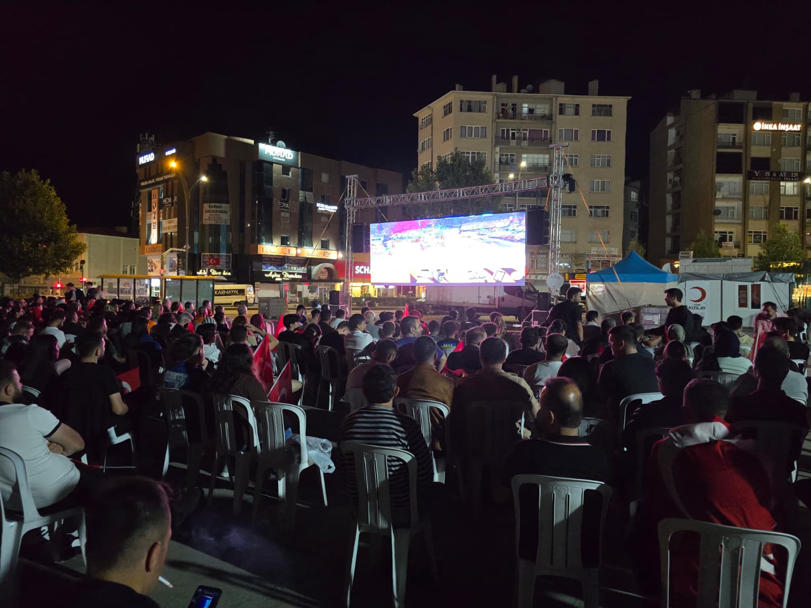 Kırşehir Valiliğinin organizasyonuyla kurulan dev ekran, kentte bayram havası estirdi. Aileler, gençler ve çocuklar, final coşkusunu hep birlikte yaşarken, meydanda milli birlik ve beraberlik duygusu hakim oldu.