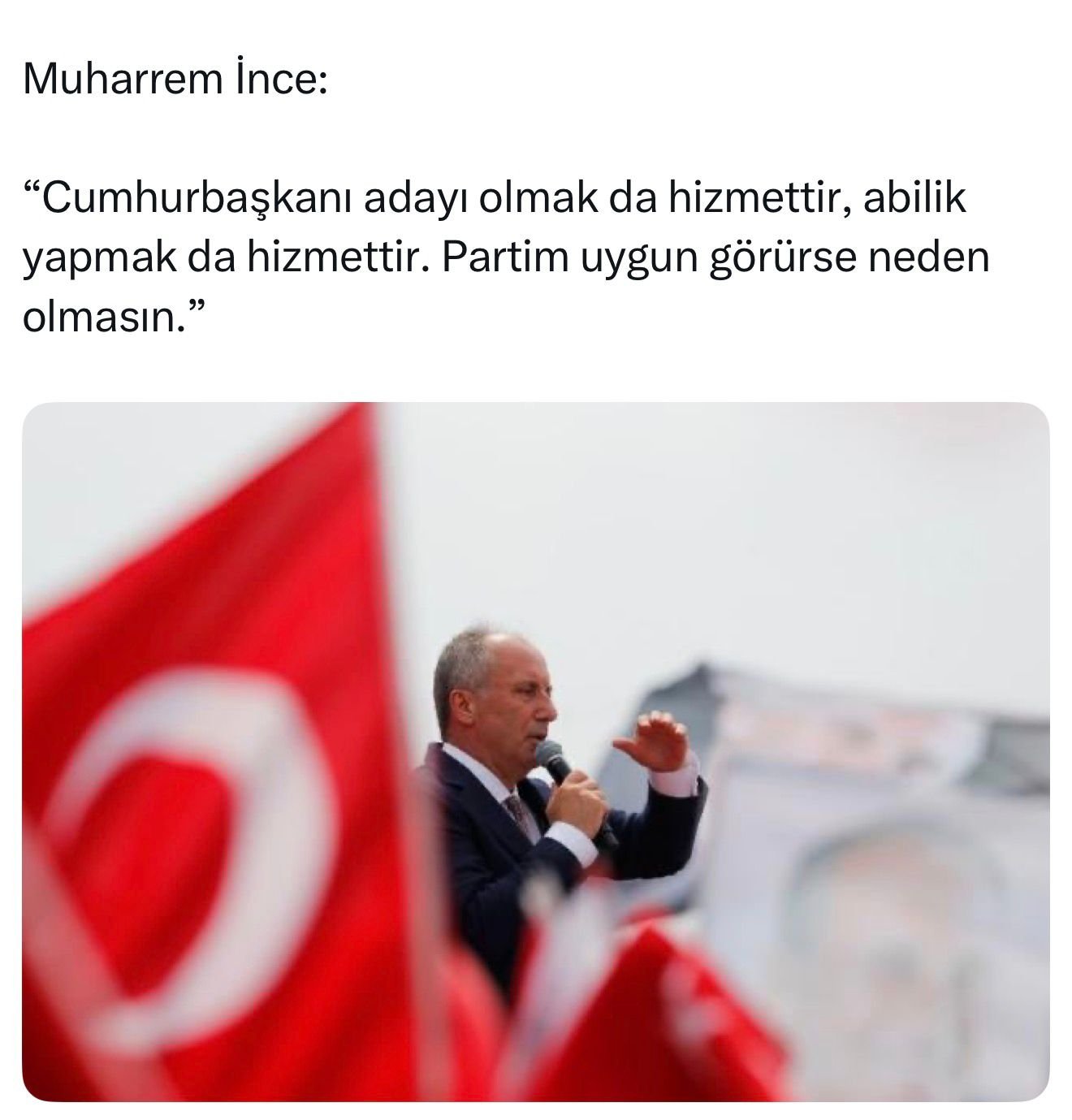 Muharrem İnce’nin “Cumhurbaşkanı adayı olmak da hizmettir” sözleri, siyasi kulislerde yeni adaylık tartışmalarını beraberinde getirdi.