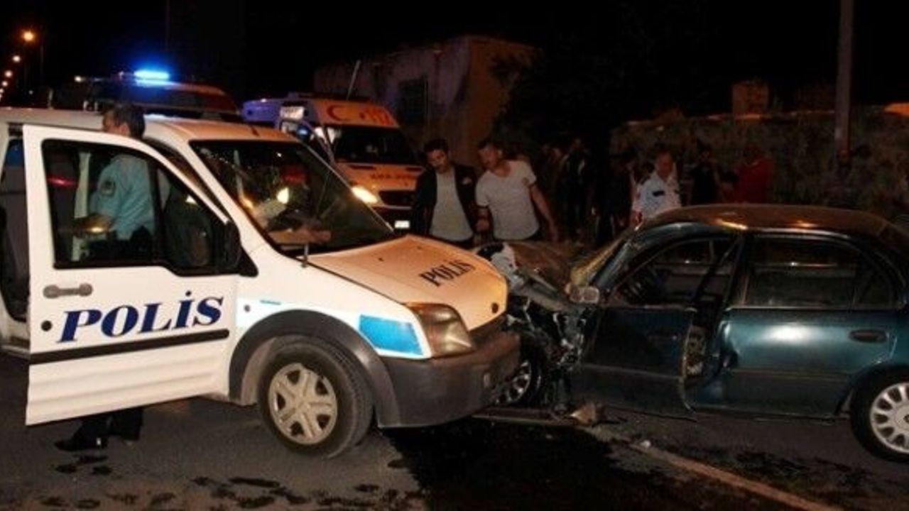 Polis aracı ile otomobilin çarpışması sonucu biri polis memuru 3 kişi yaralandı.