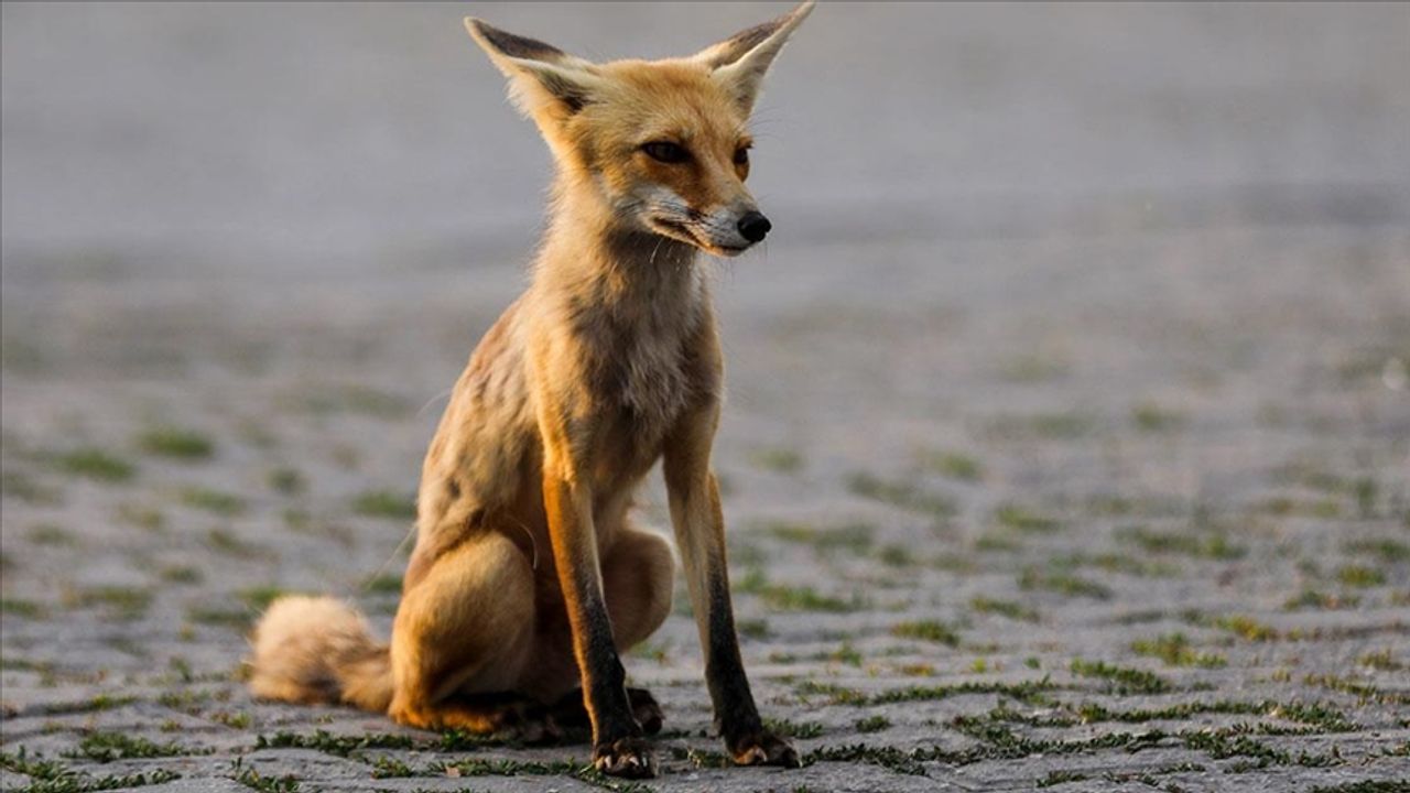 İlçe Emniyet Müdürlüğü'ne ait Sahilkent Mahallesi'ndeki polis lokalinin personeli, her gün lokalin bahçesine gelen tilkiye yiyecek veriyor.