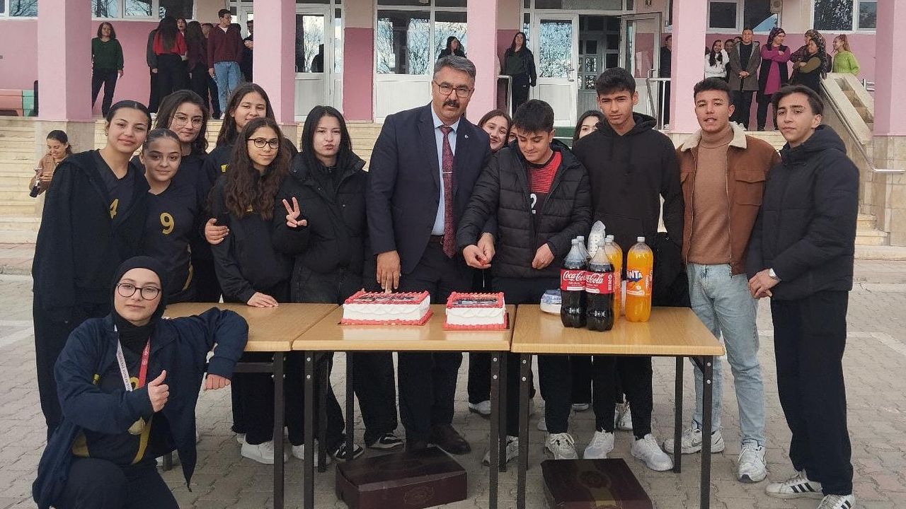 Okul yönetimi tarafından organize edilen kutlama programında, şampiyon kız voleybol takımı ile il ikincisi olan erkek voleybol takımı için pasta kesildi. Kutlamalara okul idarecileri, öğretmenler ve çok sayıda öğrenci katılarak sporcuların sevincine ortak oldu.