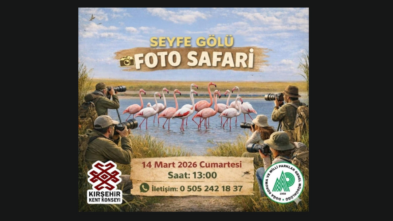Foto safari etkinliği 14 Mart 2026 Cumartesi günü saat 13.00’te, Seyfe Gölü Badıllı Kuş Gözlem Kulesi’nde gerçekleştirilecek. Yetkililer, doğanın sunduğu eşsiz manzaralara tanıklık etmek ve Seyfe Gölü’nün güzelliklerini fotoğraflamak isteyen herkesi etkinliğe davet etti.
