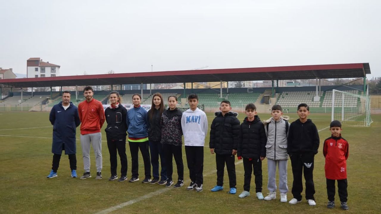 Geniş alan yapısı ve uygun zeminiyle dikkat çeken Ahi Stadyumu’nda gerçekleştirilen çalışmalar, Milli Antrenör Salim Demir gözetiminde yürütülüyor.