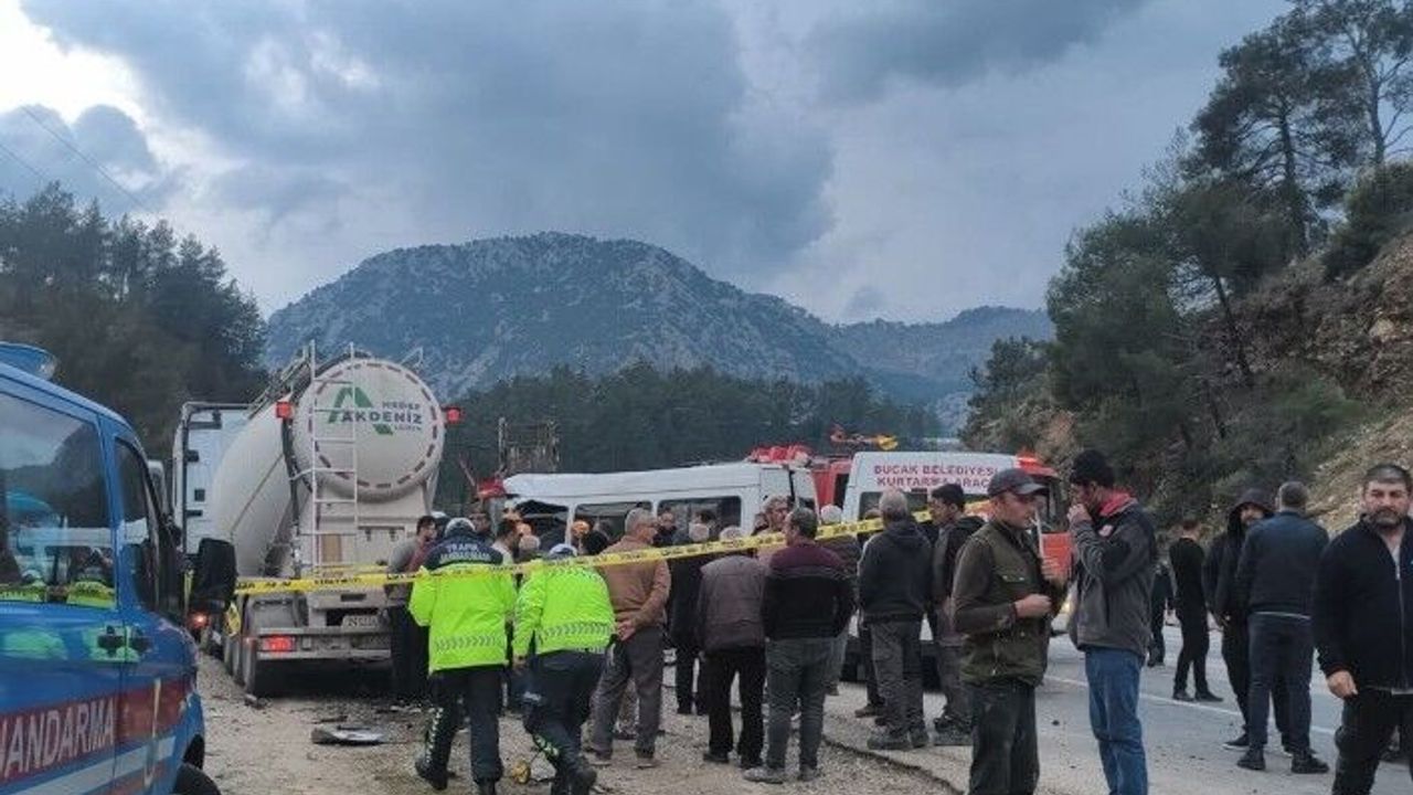 Isparta-Antalya kara yolu Kargı Tüneli çıkışı Karaöz mevkisinde Adil Özkan'ın (63) kullandığı 15 ADU 494 plakalı tarım işçilerini taşıyan minibüs ile Gürkan Gür'ün yönetimindeki 07 CHB 269 çekici, 07 CCJ 799 dorse plakalı tır çarpıştı.