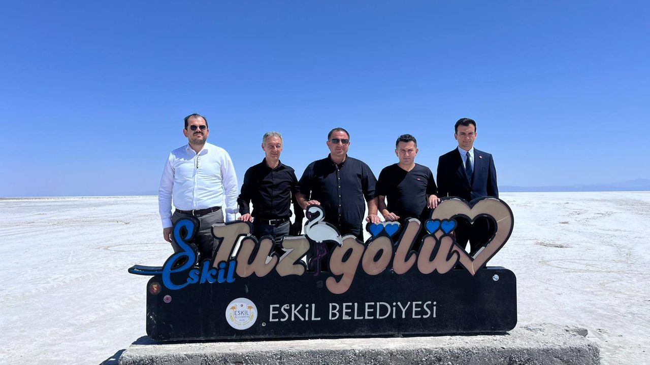 Aksaray Vali Yardımcıları Turan Soğukoluk ile Mustafa Duruk, Eskil Kaymakamı Harun Uzar ve Belediye Başkanı Mustafa Zavlak, Tuz Gölü'nde incelemede bulundu.
