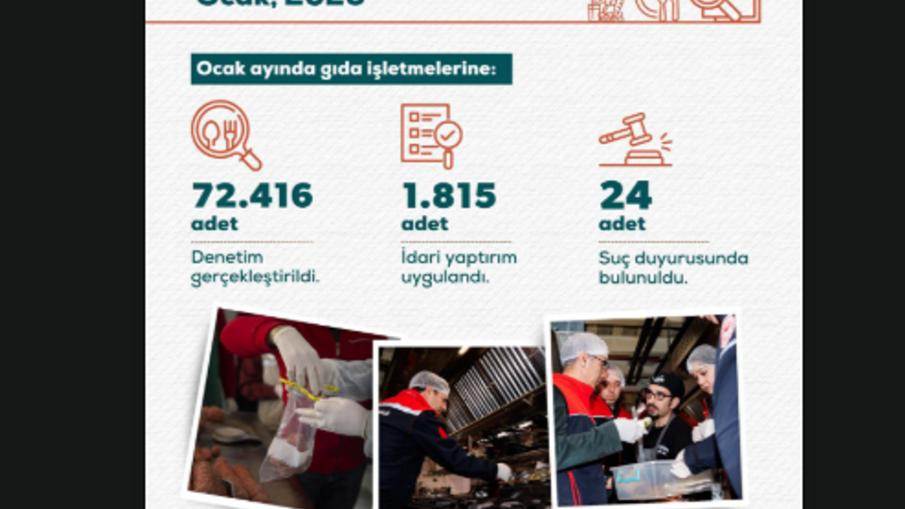 Tarım ve Orman Bakanlığı ekipleri, 1–31 Ocak tarihleri arasında vatandaşların sağlıklı ve güvenilir gıdaya erişimini sağlamak amacıyla yurt genelinde yoğun denetimler gerçekleştirdi. Bu kapsamda toplam 72 bin 416 gıda denetimi yapıldı.