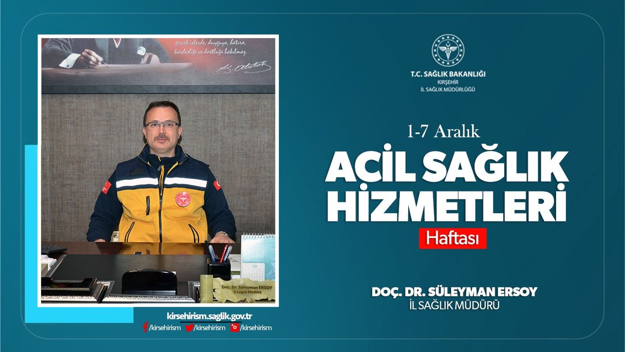 1-7 Aralık Acil Sağlık Hizmetleri Haftası dolayısıyla mesaj yayımlayan Kırşehir İl Sağlık Müdürü Doç. Dr. Süleyman Ersoy, 2025 yılının ilk 11 ayında 38 bin 48 vakaya müdahale edildiğini açıkladı.