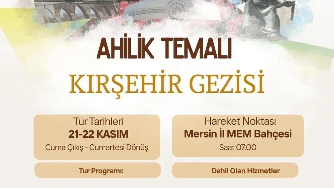 Mersin İl Milli Eğitim Müdürlüğü, unutulmaya yüz tutmuş Ahilik kültürünü genç nesillere aktarmak ve Anadolu'nun kadim başkentlerinden Kırşehir'in tarihi zenginliklerini keşfetmek amacıyla özel bir kültürel gezi düzenliyor. "Ahilik Temalı Kırşehir Gezisi" adıyla duyurulan etkinlik, 21-22 Kasım tarihlerinde gerçekleştirilecek.