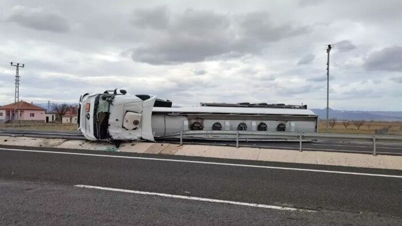 Kayseri'nin Sarıoğlan ilçesinde M.Ç'nin kullandığı 58 AY 299 plakalı akaryakıt yüklü tanker, Kayseri-Sivas kara yolunun 50'nci kilometresinde devrildi.