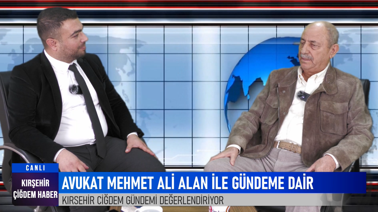 Kırşehir Dernekler Federasyonu Onursal Başkanı ve tanınmış hukukçu Avukat Mehmet Ali Alan, çıktığı Kırşehir Çiğdem Haber yayınında gazeteci Fahrettin Toker'in konuğu oldu. Kırşehir Çiğdem Gündemi Değerlendiriyor programına konuk olan Alan, Kırşehir'deki altın madeni tartışmalarından Kıbrıs meselesine, Gazze'deki soykırımdan tren yolu sorununa kadar pek çok konuda dikkat çeken açıklamalarda bulundu. Alan, hem Kırşehir için verdiği hizmetleri anlattı, hem de şehrin geleceği adına çağrılarda bulundu.