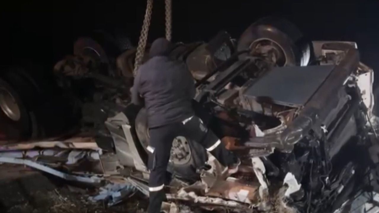 Aksaray'da tırın devrilmesi sonucu sürücü hayatını kaybetti.