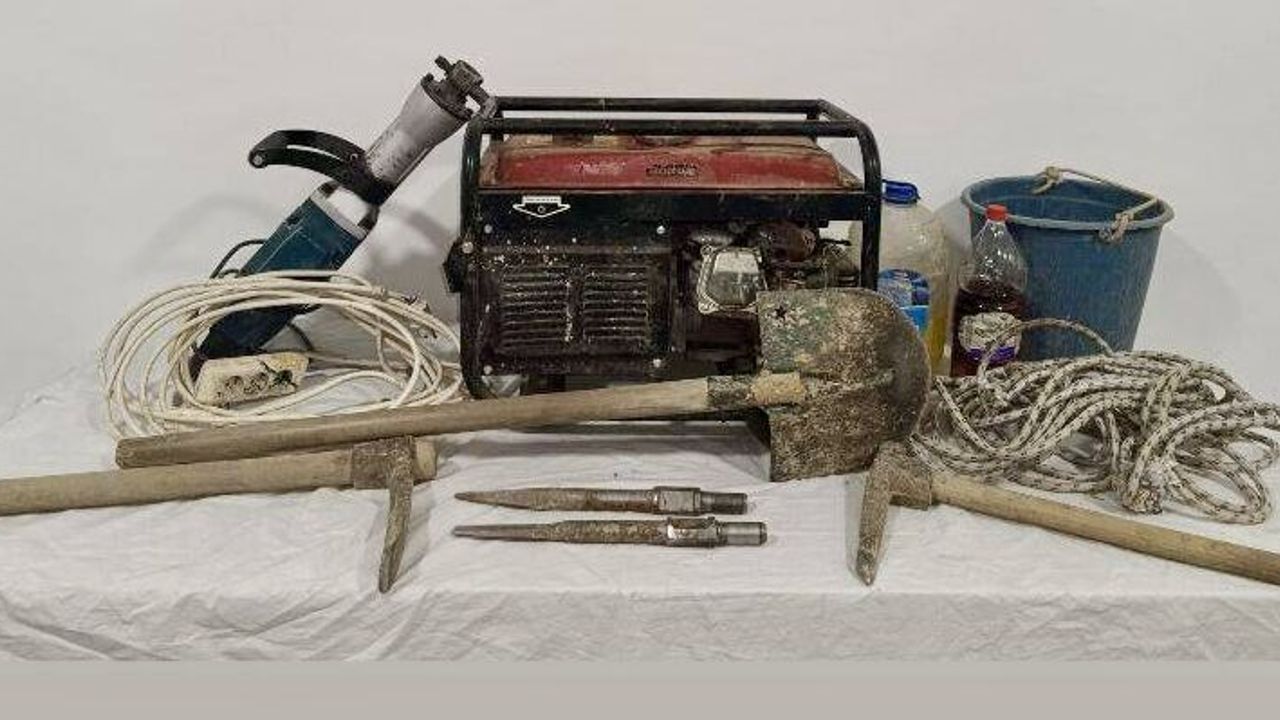 Olay yerinde yapılan incelemelerde, şüphelilerin kazı işlerinde kullandığı teknik donanımlar da ele geçirildi. Aramalarda; Elektrikli delici ve kırıcı ekipmanlar, Kazma, Çok sayıda kablo ve halat muhafaza altına alındı.