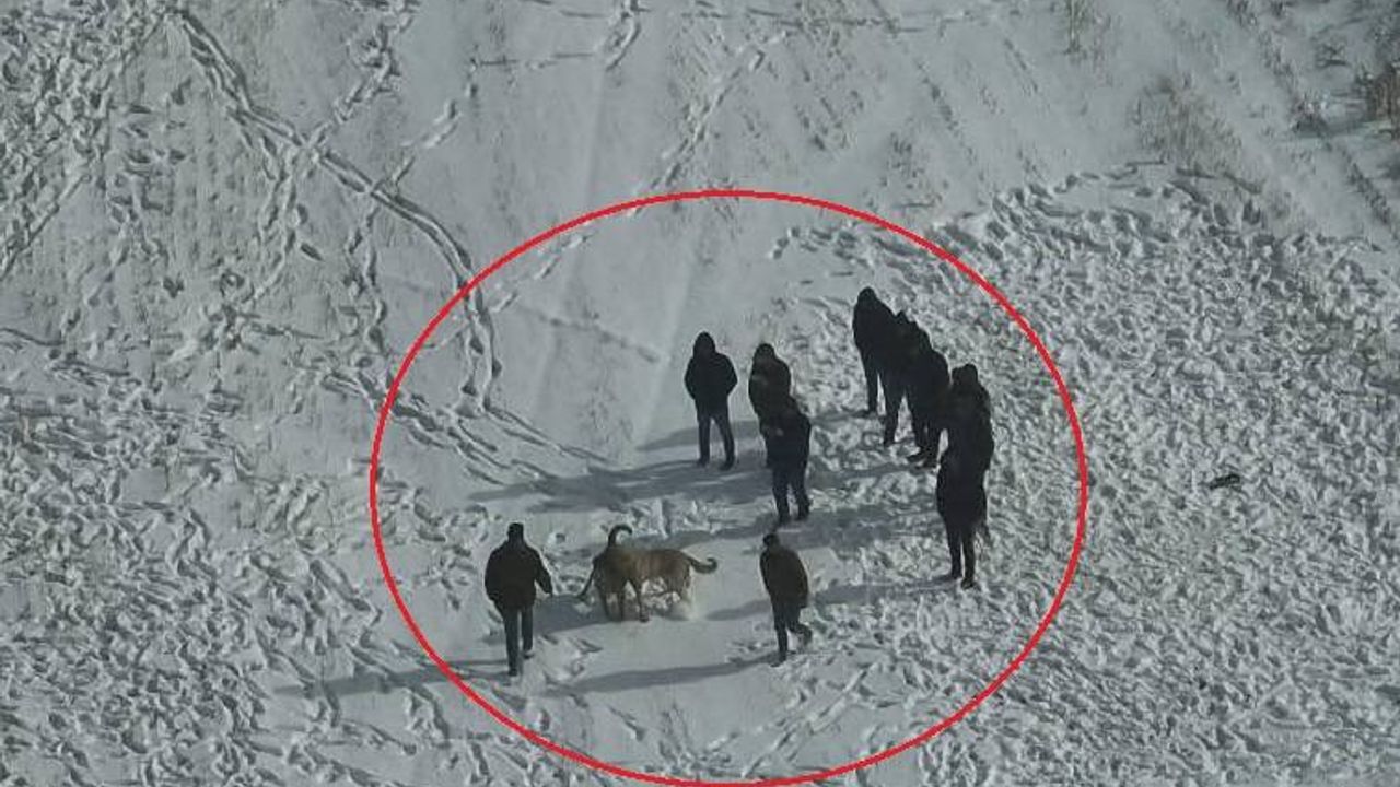 Dronla kaydedilen görüntüde, dövüştürülen köpeklerin çevresinde bulunan şüphelilerin izlendiklerini fark ettiklerinde kaçmaya çalıştıkları yer alıyor.
