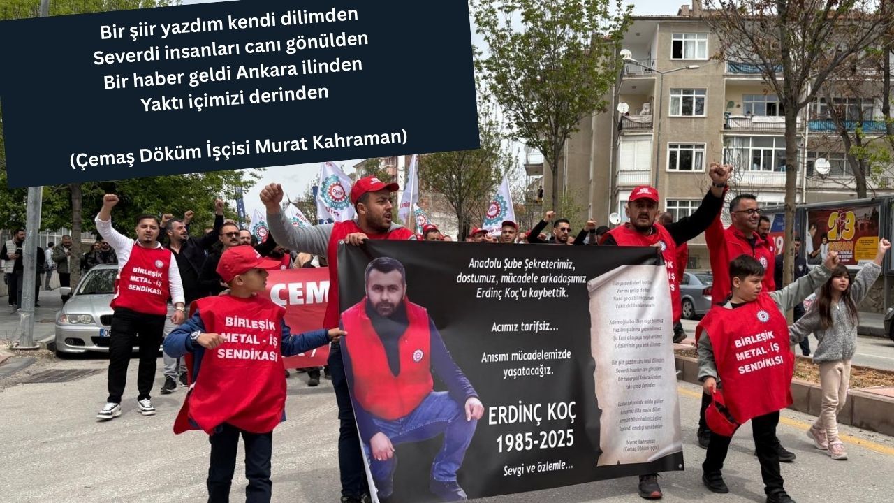Ayrıca Birleşik Metal-İş Sendikası Kırşehir Şubesi üyeleri tarafından taşınan pankartta Çemaş Döküm İşçisi Murat Kahraman’ın şiiri yer aldı.
