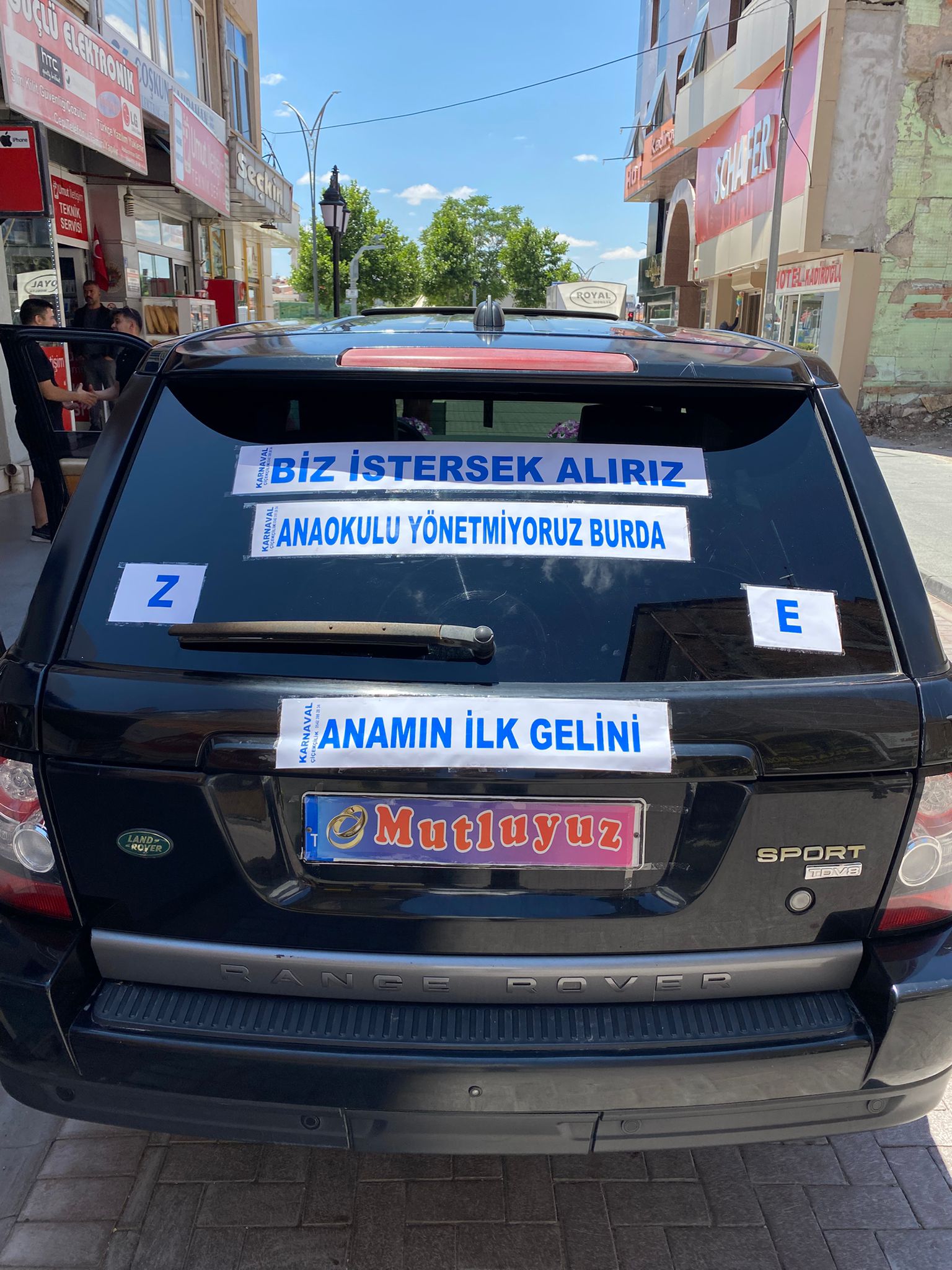 Damat’ın arkadaşlarından Damat’a hitafen araçların üstüne yazılar yazdırarak yaptıkları sürprizleri de bunu gören vatandaşları kendine hayran bırakıyor.