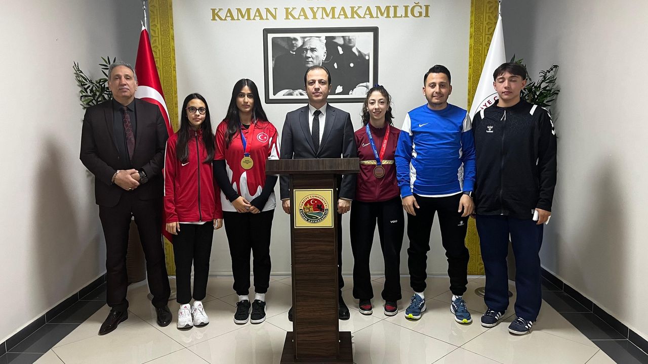 Genç sporcular, İlçe Gençlik ve Spor Müdürü Cengiz Aslan ve antrenörleri eşliğinde Kaman Kaymakamı Engin Tok’u makamında ziyaret etti. Kaymakam Tok, sporcuları tek tek tebrik ederek başarılarından duyduğu memnuniyeti dile getirdi. Kaymakam Tok, gençlerin sporda elde ettiği bu uluslararası başarıların Kaman adına büyük bir motivasyon kaynağı olduğunu vurguladı.