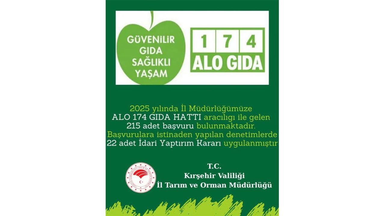 Tarım ve Orman Bakanlığı tarafından hayata geçirilen ALO 174 Gıda Hattı ve Whatsapp İhbar Hattı uygulamaları sayesinde artık her vatandaş gönüllü bir gıda denetçisi olabilecek. Mobil uyumlu sistem sayesinde vatandaşlar, karşılaştıkları uygunsuzlukları hızlı ve kolay bir şekilde yetkililere bildirebilecek.