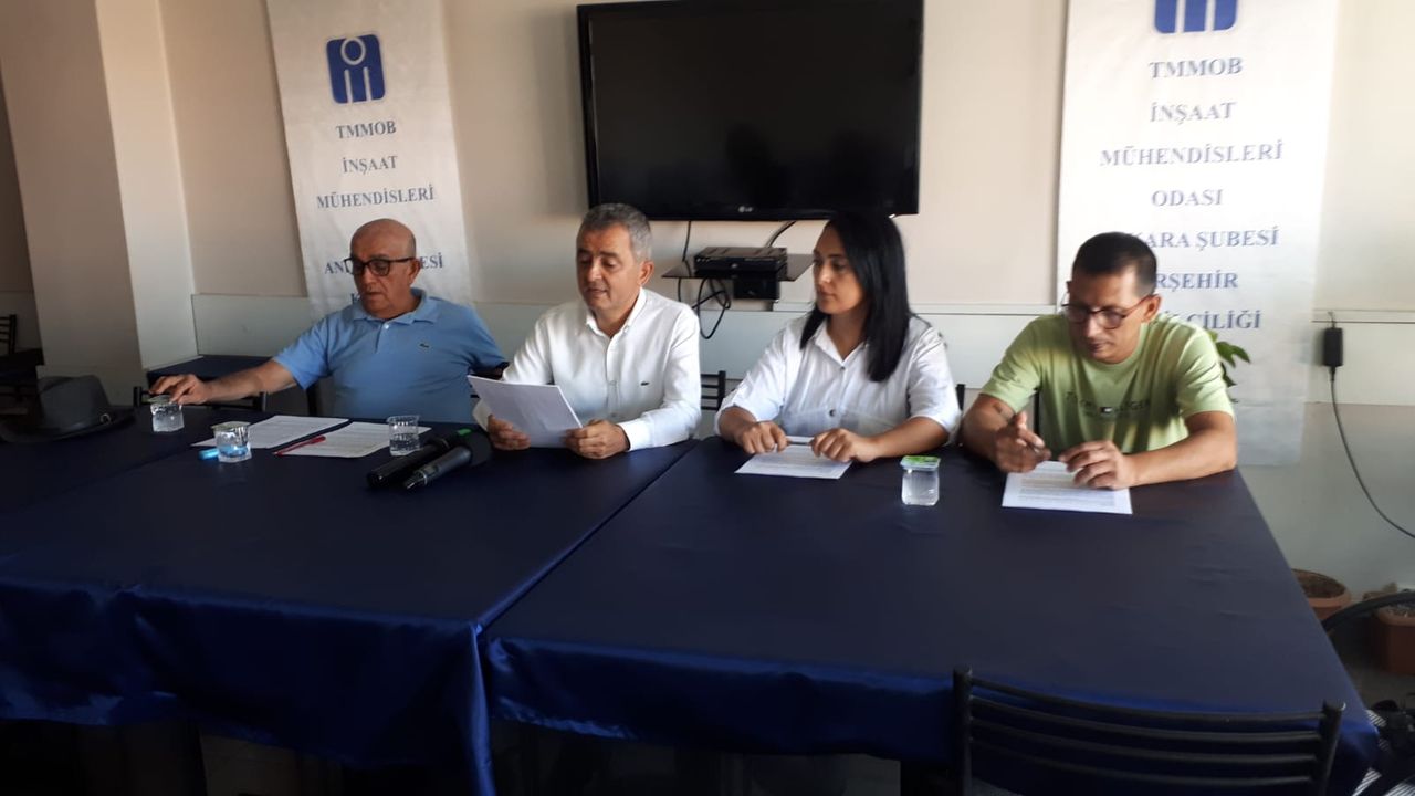 İnşaat Mühendisleri Odası Kırşehir Temsilciliği, “Öte yandan 6 Şubat Depremlerinin ardından başlatılan yargı süreçlerinde ise yıkımın gerçek sorumlularının ortaya çıkarılmasından uzaklaşılmakta, tüm sorumluluk, günah keçisi ilan edilen teknik elemanların üzerine yıkılmaktadır.” dedi.