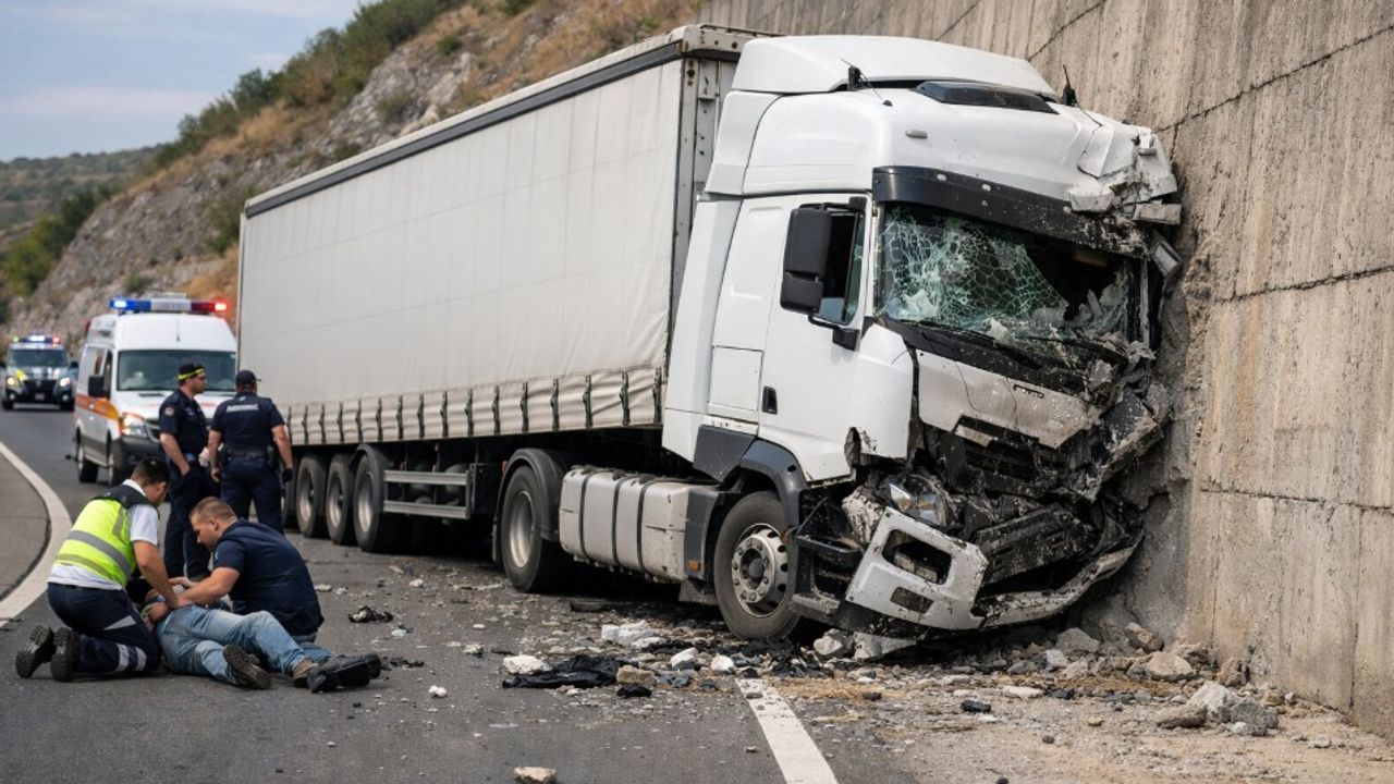 İstinat duvarına çarpan tırın sürücüsü öldü, 1 kişi yaralandı.
